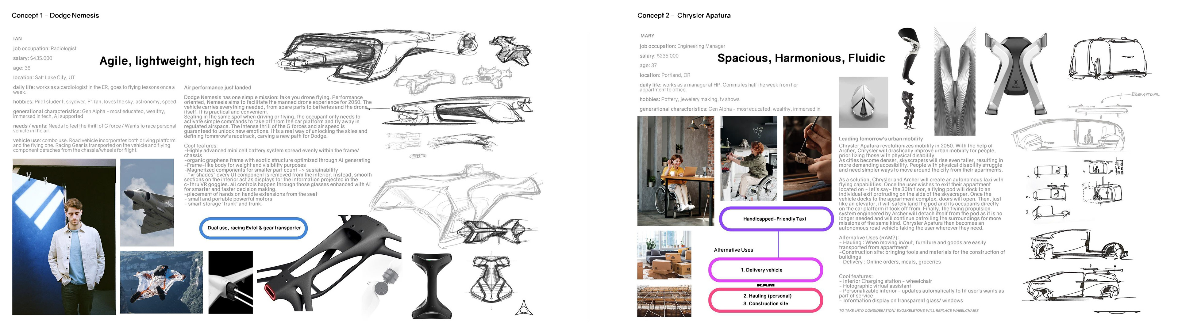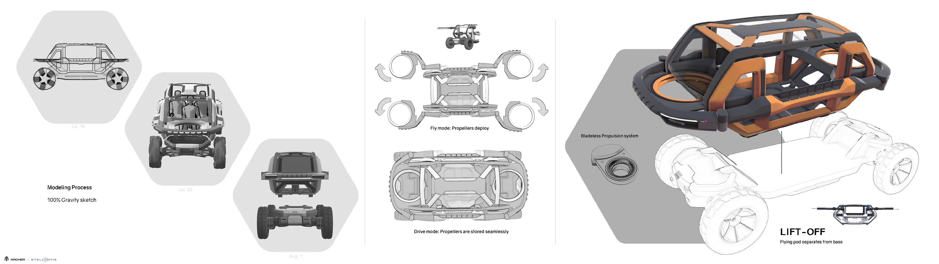 Here is my Summer 2023 Internship project from the Stellantis Advanced design studio. I have the privilege and rare chance to share this project with ACCD faculty for the Scholarship Portfolio review at ArtCenter. This project was the result of intense months of work in an attempt to create the vision of Jeep and Archer EVtols. This internship project was very well received by the entire department of design of Stellantis NA.